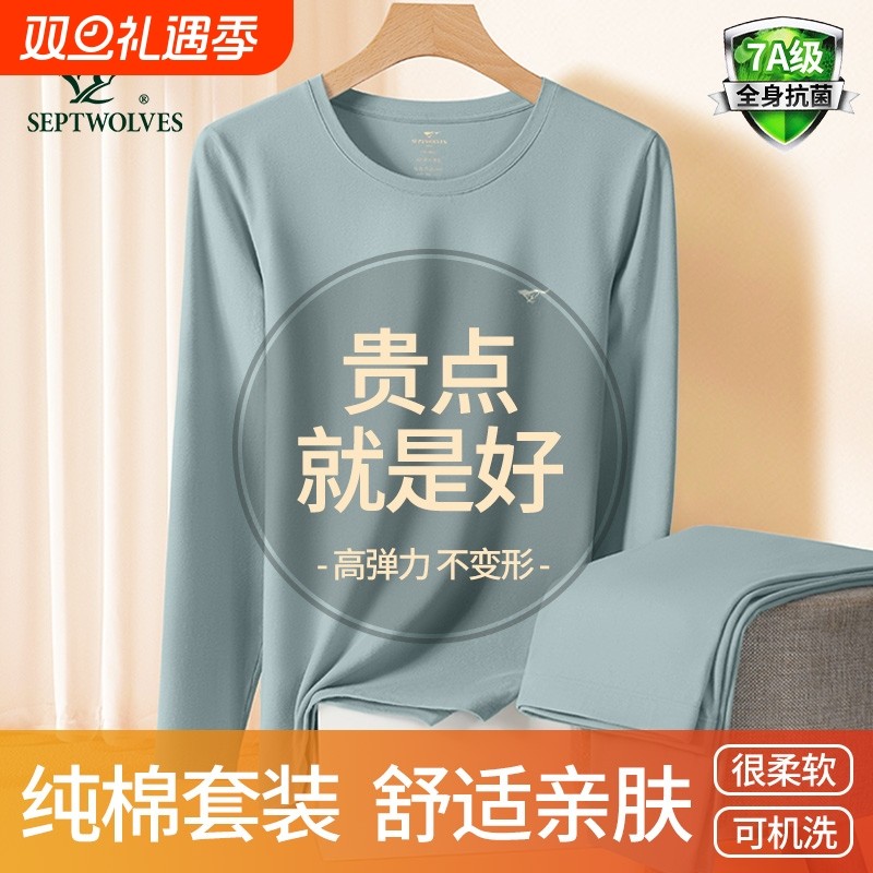 七匹狼男士保暖内衣套装纯棉毛衫春秋青年圆领薄款防寒秋衣秋裤男